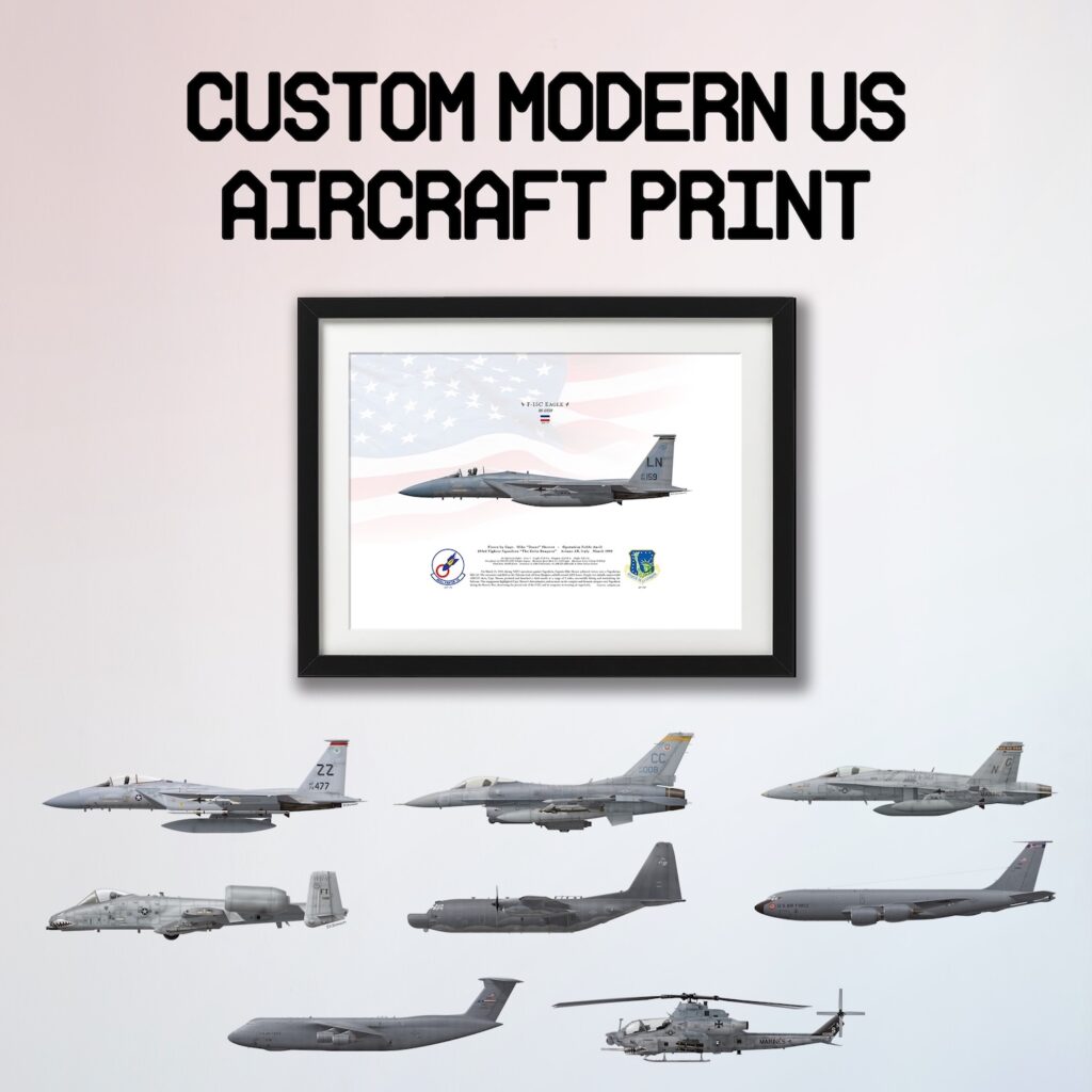 We specialize in highly detailed, historically accurate side-view illustrations of both historic and modern military aircraft. Whether you’re looking to recognize others’ service, honoring your own, or a loved one’s legacy, each custom print is made with care, research, and professional-grade craftsmanship.